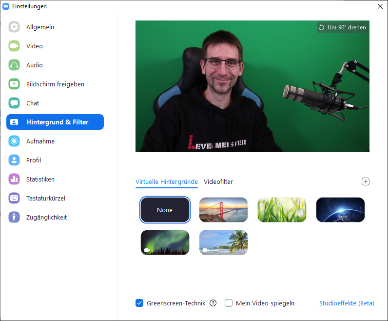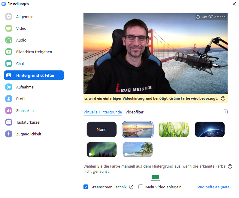 Ohne einen aktuellen Rechner benötigen Sie einen Greenscreen, um den Hintergrund ausblenden zu können. Das Ergebnis ist aber in der Regel deutlich besser, als die Automatikfunktion.